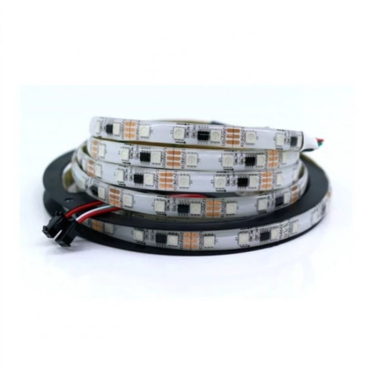استریپ ws2811 نواری دیجیتال آی سی دار strip پیکسلی برنامه پذیر نوار ال ای دی ws2811 آر جی بی هوشمند پرفروشترین ریسه برنامه پذیر ( که در ایران با نام ال ای دی نواری آی سی دار/ پیکسلی شناخته می شود) درواقع یک رشته بلند و منعطف از ال ای دی ها است که سه ال ای دی توسط آی سی ws2811 قابل برنامه پذیری می باشد و می توان برای هر 3 ال ای دی آن به طور مجزا رنگی مشخص قرار داد (به همین دلیل به آن هوشمند گفته می شود.) .قیمت درج شده بابت 1 متر و رول کامل بصورت 5 متری می باشد.تعداد خرید را مضربی از 5 قرار دهید .(5 ، 10 ، 15 و ...)