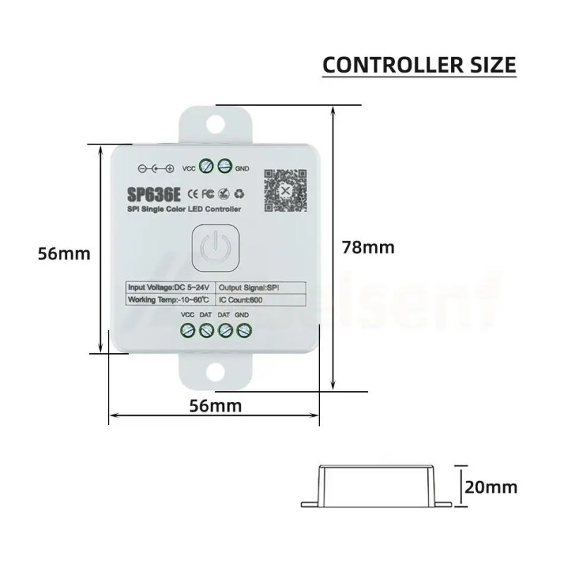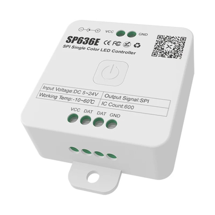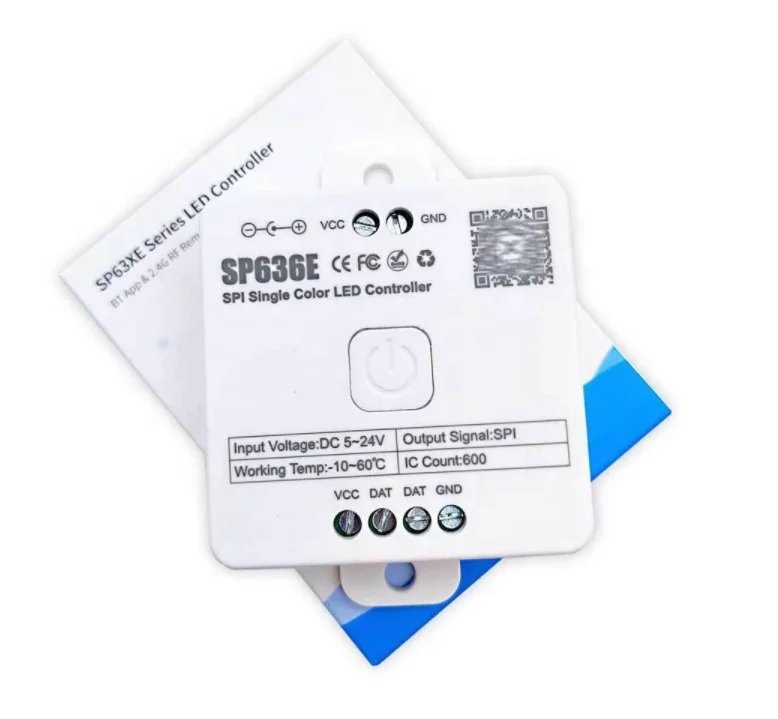 کنترلر بلوتوث SP636E یک کنترلر هوشمند برای انواع نوار LED تک رنگ حرکتی یا آیسی دار میباشد.