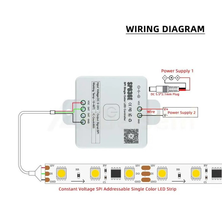 این کنترلر میتواند انواع ال ای دی نواری تکرنگ دیجیتال را کنترل نماید.