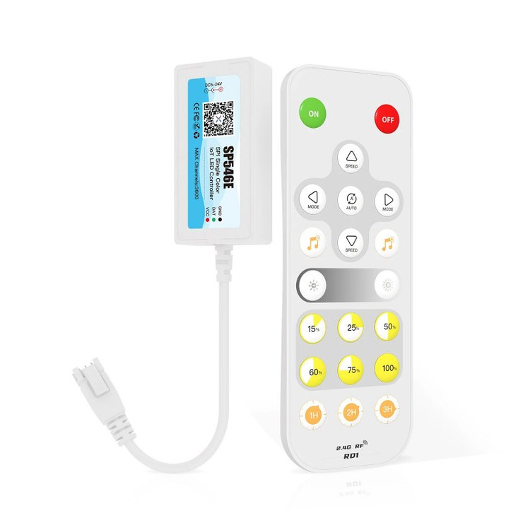 کنترلر دیجیتال موزیکال SP546E یک کنترلر LED است که برای کنترل نوارهای LED تک رنگ رانینگ استفاده می شود. این یک کنترلر دیجیتال بلوتوثی و وای فای است که می تواند با استفاده از یک برنامه تلفن هوشمند یا تبلت کنترل شود.