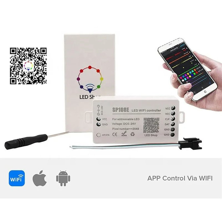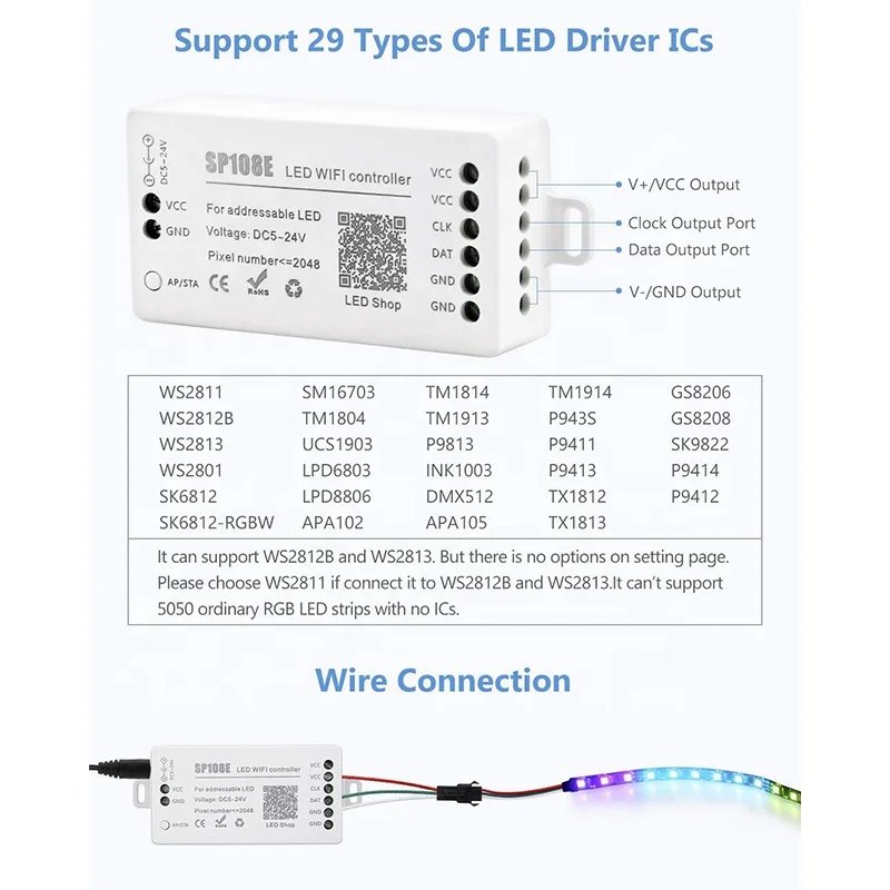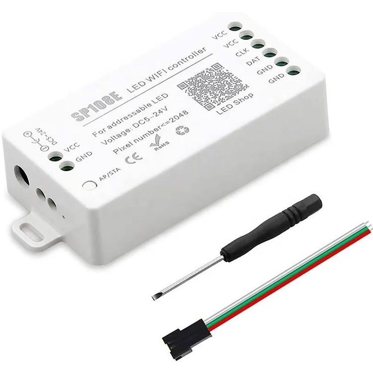 کی از جدیدترین کنترلر های پیشرفته ، کنترلر دیجیتال WiFi SP108E می باشد. از این کنترلر جهت تنظیم نور LEDها ، سرعت انتشار نور و زمان بندی خاص استفاده می شود.