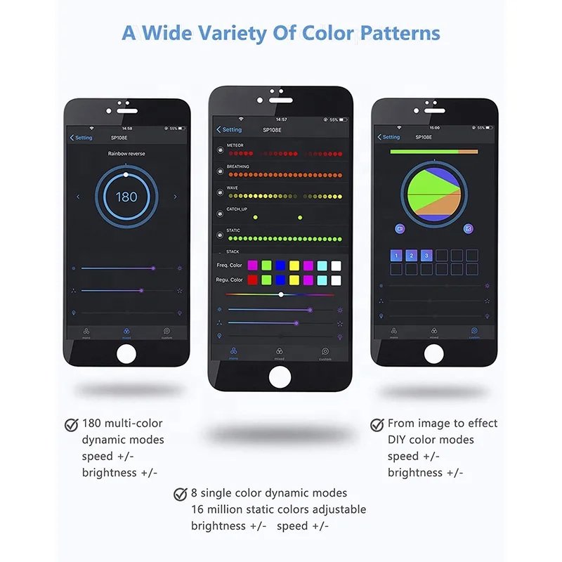 از کنترلر دیجیتال SP108E WIFI جهت تنظیم نور LEDها، سرعت انتشار نور و زمان بندی خاص استفاده می شود.