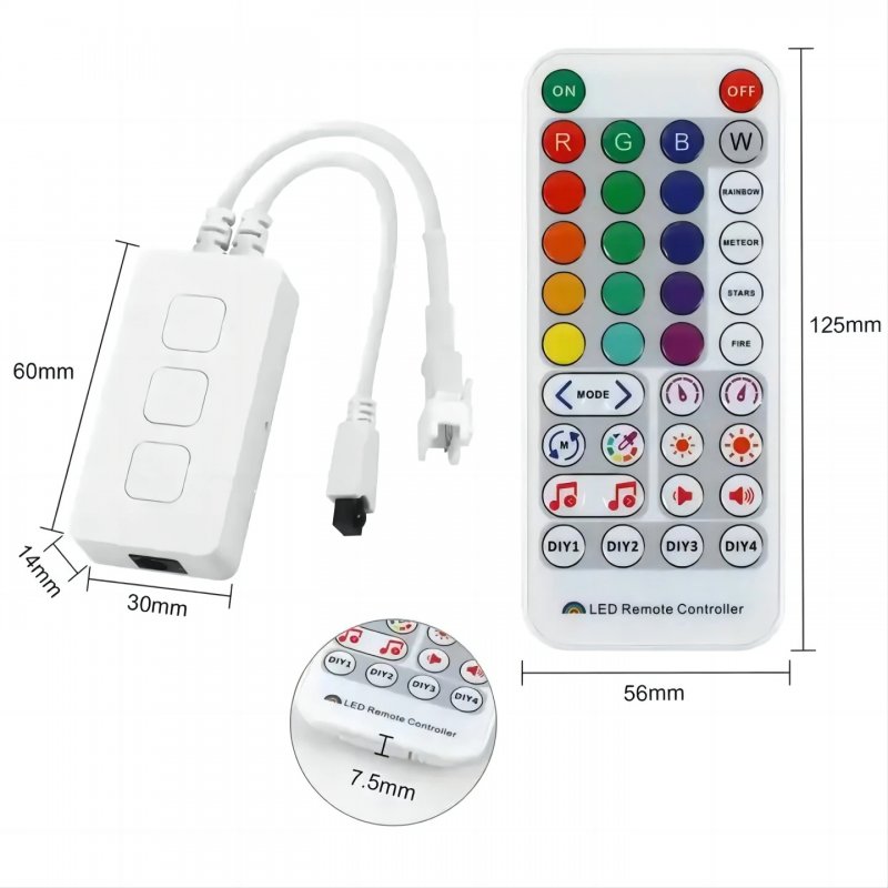به آسان ترین شکل ممکن و با استفاده از یک ریموت IR remote کنترلر ریسه نواری دیجیتال خود را روشن و خاموش کنید، شدت نور را تغییر دهید، رنگ و افکت تعیین کنید و سرعت حرکت نور را مشخص کنید!