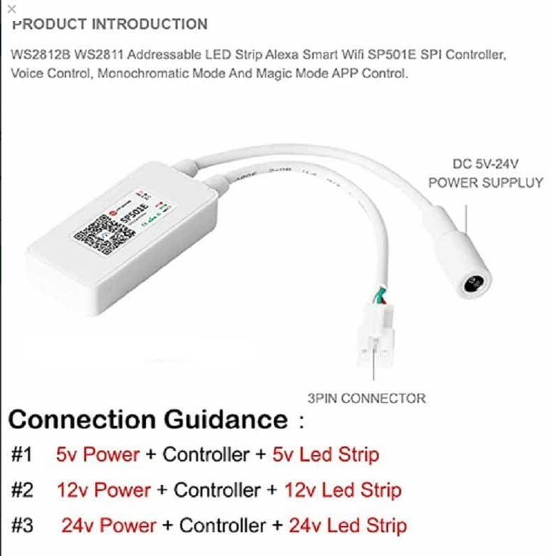 3- کنترل کننده SP501E را روشن کنید (DC5-24V) ، و به نوار LED مورد نظرمتصل کنید.
