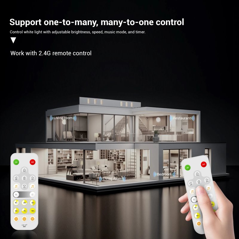 کنترل صدا از طریق بلندگوهای هوشمند: با پلتفرمهای بلندگوی هوشمند مانند Alexa، Google Home، XiaoDu و XiaoAi یکپارچه شده است که امکان کنترل روشن/خاموش روشنایی، روشنایی و رنگ را از طریق دستورات صوتی فراهم میکند.