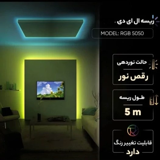 ال ای دی نواری RGB یک رول 5 متری ولتاژ راه اندازی 12 ولت می باشد.