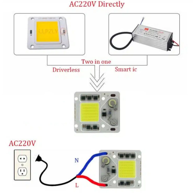 از این مدل چیپ برای ساخت و تعمیر پروژکتورها استفاده میشود ونیازی به درایور ندارد و بابرق مستقیم 220 ولت شهری روشن میشود.توان این چیپ 50 وات میباشد و میزان نوری معادل 6000لومن تولید میکند.این مدل دارای ترمیستور میباشد و با گرم شدن بیش از حد چیپ وارد عمل شده و توان چیپ را به منظور کاهش دما، کم میکند.