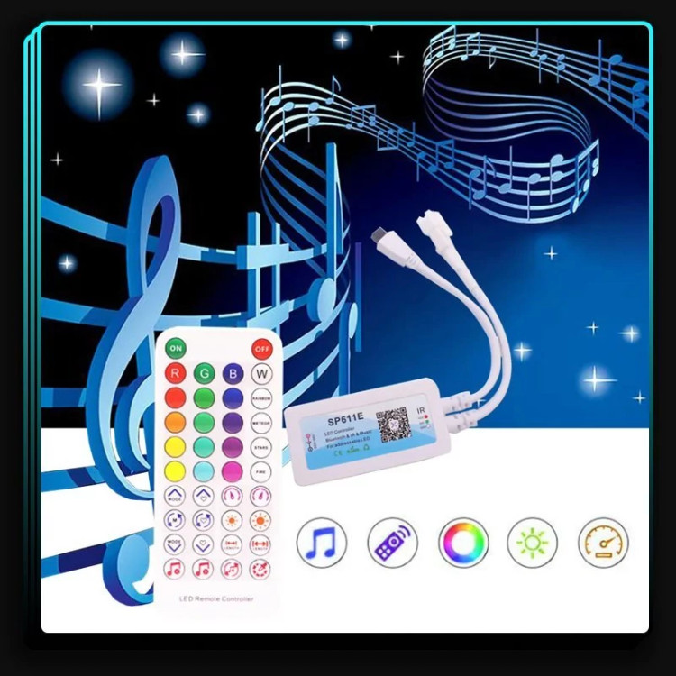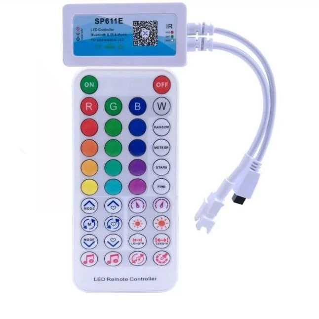 کنترلر دیجیتال بلوتوثی SP611E جزو بهترین کنترلرها برای کنترل ال ای دی های پیکسلی و برنامه پذیر می باشد.هر افکت و ویژگی ای که مدنظر شما باشد و برای یک نورپردازی هوشمند و مدرن مورد نیاز باشد ، در کنترلر دیجیتال بلوتوثی SP611E یافت میشود و با ریموت 38 کلید IR و نرم افزار اندروید و IOS که با بلوتوث به نرم افزار متصل می شود.کنترلر دیجیتال بلوتوثی SP611E با ویژگی هایی که دارد ، نورپردازی شگفت انگیز و ویژه ای را به نمایش می گذارد.از ویژگی های آن می توان به افکت های جذاب با 16 میلیون رنگ ، افکت های سینک شده با موزیک پخش شده ، تایمر و.... اشاره کرد.