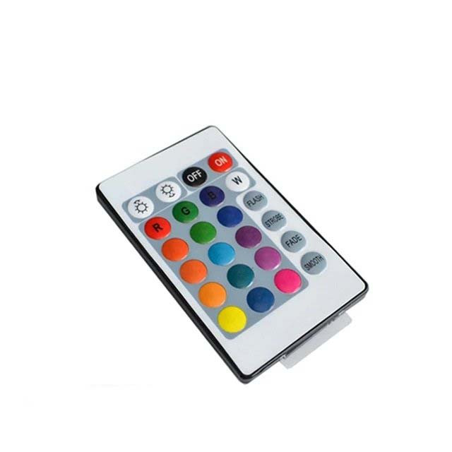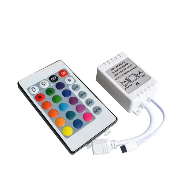ریموت کنترل LED RGB - مادون قرمز - 24 کلید - درایور 6A از این درایور برای راه اندازی انواع LED RGB استفاده می شود که علاوه بر ایجاد 15 رنگ ثابت ، قابلیت کار در حالت فلاشر و FADE و ... را دارد که توسط ریموت دستگاه قابل انتخاب است. بر روی کنترل از راه دور کلید های خاموش و روشن، تغییر شدت نور(شدت روشنایی) ، کنترل سرعت فلاشر (سرعت چشمک زن) ، مدهای مختلف فلاشر و همچنین 15 رنگ ثابت وجود دارد گیرنده از نوع حافظه دار ارسال خواهد شد که در بازار اصطلاحا با عنوان دو آی سی عرضه میگردند و برخلاف مدل های تک آی سی که حافظه ندارند، دارای حافظه بوده و برنامه تنظیم شده با برق قطع در حافظه باقی می ماند و نیازی به تنظیم مجدد ندارند