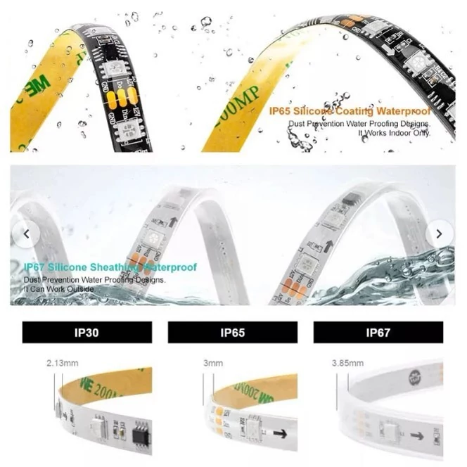ریسه فول کالر WS2811 با توجه به موارد مصرفی دارای درجه حفاظت مختلف است .