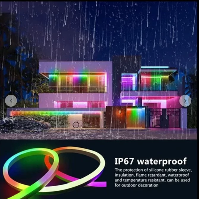 این ریسه LED حرفهای با استاندارد ضد آب IP67 طراحی شده است که آن را به بهترین انتخاب برای محیطهای مرطوب و فضای باز تبدیل کرده. محصول حاضر با پوشش سیلیکونی کاملاً مستحکم، تمامی بخشهای حساس را به شکل عالی در برابر نفوذ آب، رطوبت و حتی گردوغبار محافظت میکند. ویژگی منحصر به فرد این ریسه، مقاومت استثنایی آن در شرایط آب و هوایی مختلف است. میتوانید با اطمینان کامل از این محصول در فضای باز استفاده کنید، چه برای تزئینات دور استخر، چه برای نورپردزی حیاط و تراس، و حتی برای نصب در محیطهایی که در معرض بارانهای شدید هستند. پوشش ضد آب آن به حدی قوی است که حتی در صورت قرار گرفتن موقت در آب (تا عمق 1 متر به مدت 30 دقیقه) نیز به عملکرد خود ادامه خواهد داد. برای حفظ خاصیت ضد آب این محصول، توصیه میکنیم نقاط اتصال و برش را با نوارهای مخصوص ضد آب اضافی محکم کنید. همچنین بهتر است از منبع تغذیه مخصوص فضای باز استفاده نمایید. این ریسه به گونهای طراحی شده که در برابر تابش مستقیم آفتاب، یخبندان و تغییرات دمایی شدید نیز مقاومت بالایی از خود نشان میدهد.