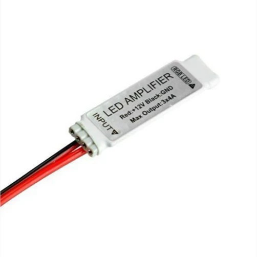 آمپلی فایر RGB وظیفه جبران افت ولتاژ تجهیزات LED را دارا است. در صورتیکه از LED های نواری RGB و یا والواشر RGB در متراژ زیاد استفاده می کنید، متوجه افت ولتاژ و در نتیجه کاهش نور آنها خواهید شد.راه حل این مشکل استفاده از تقویت کننده های درایور RGB است. کافی است به ازای هر 5 متر ریسه، یک عدد آمپلی فایر RGB قرار داده تا افت ولتاژ جبران گردد.در صورتیکه خروجی جریان درایور RGB اصلی شما کم است، با آمپلی فایر می توانید جریان قابل تحمل آنرا نیز افزایش دهید.
