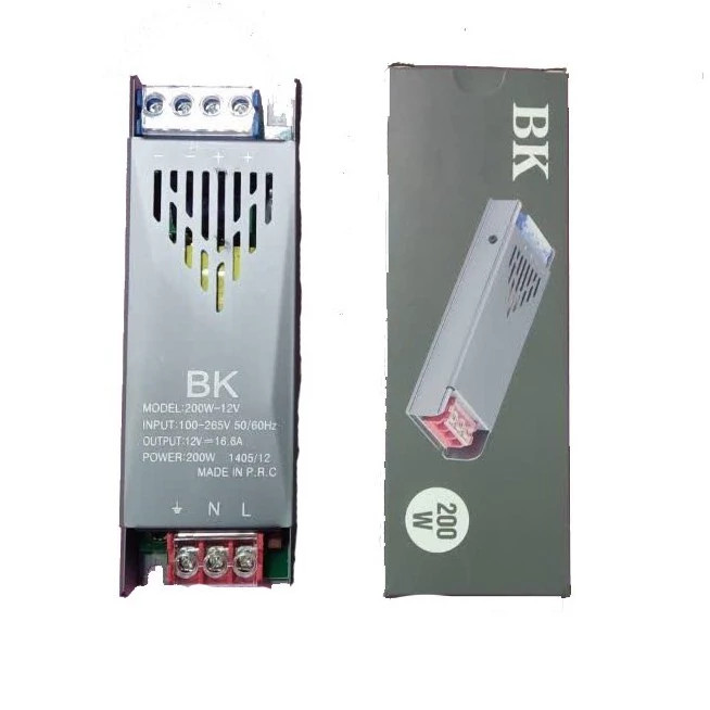 سوییچینگ 12 ولت 200 وات (16.5 آمپر) BK یکی از سوئیچینگ های اسلیم نسل جدید منابع تغذیه میباشد و با طراحی بسیار زیبا و کارامد جهت نصب برای لاینهای نوری که فضای کمی برای نصب ترانس یا سوییچینگ دارند استفاده میشوند. و برای تابلوهای صنعتی با سطح ایزولهی بالا و همچنین با کیفیت ساخت استاندارد برای مصرف 12 ولت میباشد.