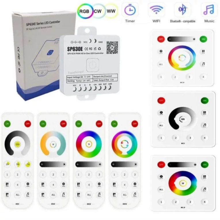 درایور SP630 یک محصول همه کاره ویژه نورپردازی های لوکس می باشد. این درایور دارای خروجی ها R – B – G -CW – W و SPI است که با توجه به نیاز پروژه، مد کاری و نوع نورپردازی کنترلر توسط نرم افزار بلوتوثی آن با نام BalanX تنظیم شده و سپس تمامی امکانات از طریقاین نرم افزار جامع قابل دسترس هست. کنترلر بلوتوث SP630E یک کنترلر هوشمند برای انواع نوار LED، ریسه LED، پیکسل LED و غیره است.این کنترلر دیجیتال حرفه ای کیفیت مناسب ، نورپردازی زیبایی را برای فضای دلخواه شما به ارمغان می آورد.