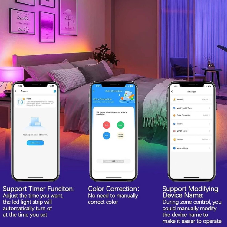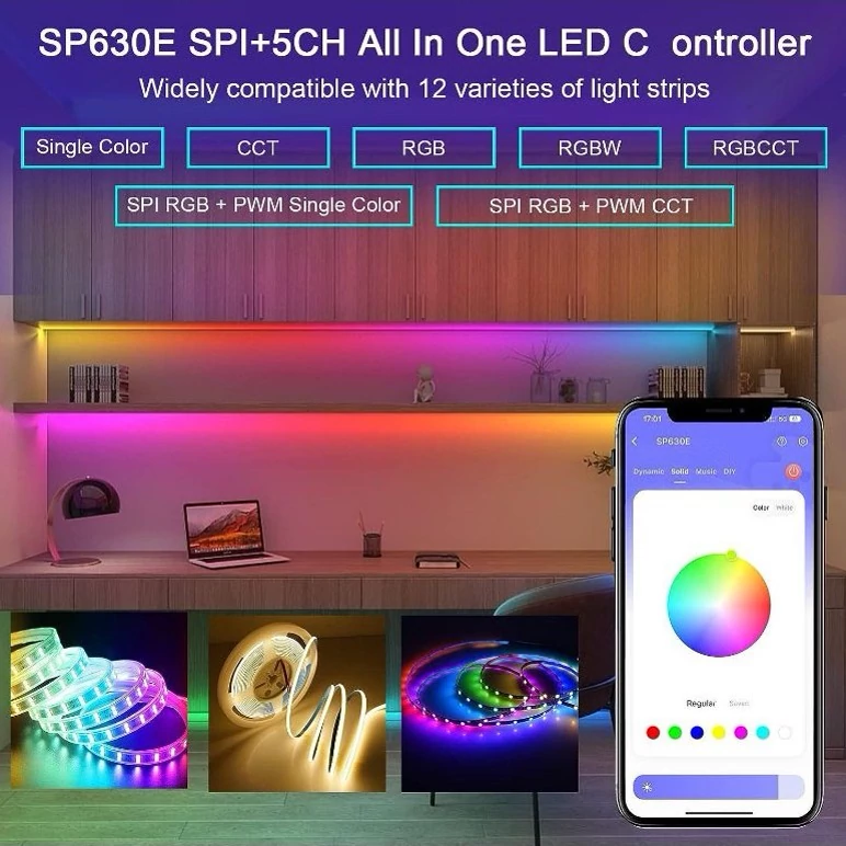 این کنترلر میتواند انواع ال ای دی نواری تکرنگ ، دورنگ (CCT) ، آر جی بی (RGB) ، آر جی بی سفید (RGBW) و آر جی بی سفید آفتابی (RGBCCT) را کنترل نماید.علاوه بر این توانایی کنترل تمام مدل های پیکسل را دارا است.